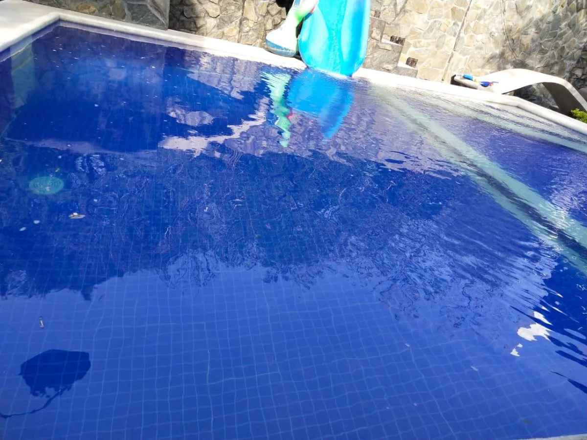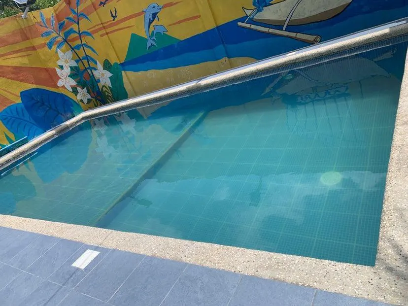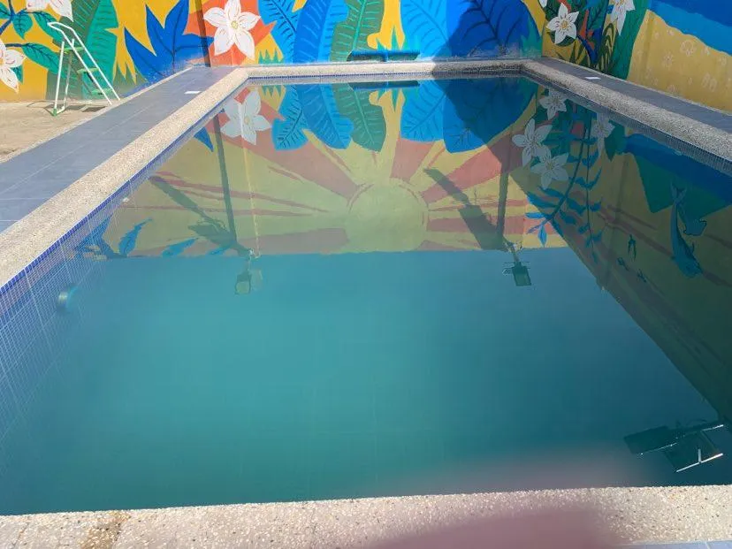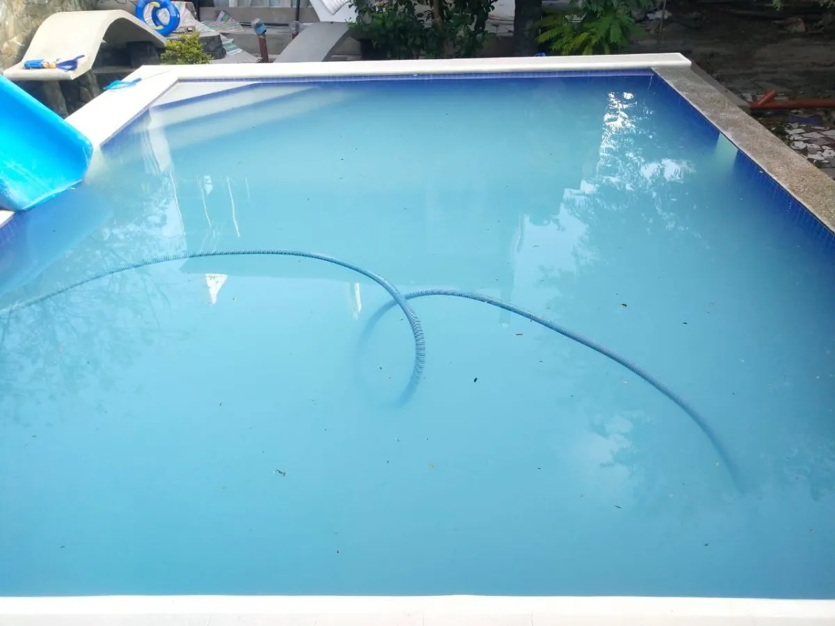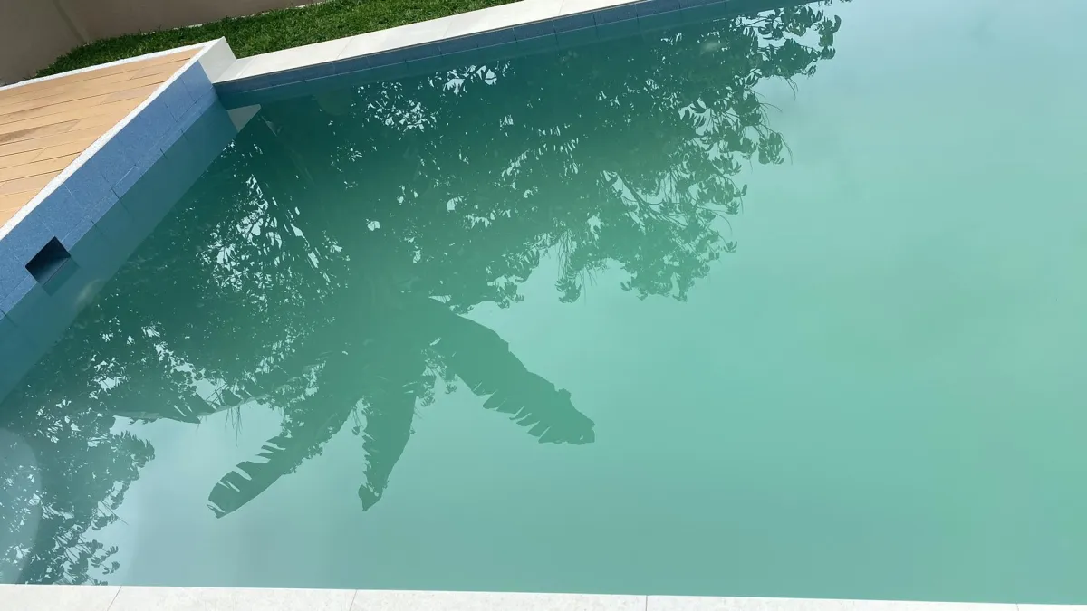 (We've used real images of our client's pool before they used Clear-Up Pool Clarifier.)
